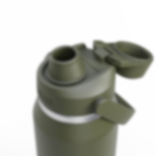 Laget av vakuumisolert rustfritt stål, vil vår Thrive Chug VSS være det første du griper etter når du trenger påfyll av drikke som holder seg iskald hele dagen. Toppen på flasken har en fjærbelastet skrukork. Hver gang du skrur opp toppen så popper korken elegant til siden og holder seg vekk fra ansiktet når du drikker. Drikketuten er laget av silikon og er veldig behagelig å drikke fra. Toppen har også et bærehåndtak festet på seg og gjør det enkelt å ta med seg flasken din overalt.