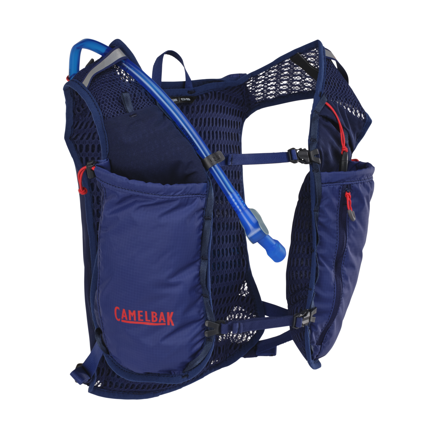 Circuit Vest leveres med et 1,5L/50oz CRUX™-reservoar som gir 20 % mer vann per slurk, og er lett nok til å bære deg gjennom mange mil. Frontpanelene har fire ulike lommer til myke flasker, slik at du kan tilpasse hvor du oppbevarer ekstra væske eller utstyr.